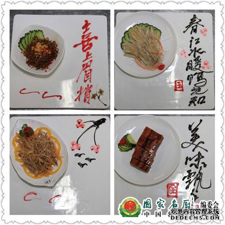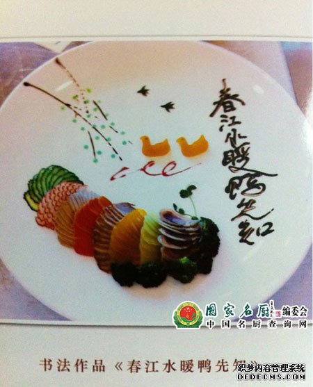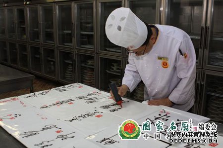 经过两年多的不断努力,他的盘饰书法也日臻完善。他很骄傲能够发挥所长,将中国传统书法艺术与经典菜品有机结合,创造中国饮食文化的意境之美,提高中式正餐的文化附加值。